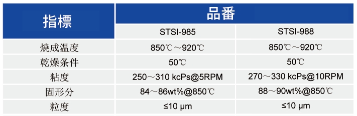 STSI-985/988 は、積層インダクタおよびチップビーズの內(nèi)部電極に使用され、特に高出力インダクタに適しています。 この製品は主に銀粉、ガラス粉、バインダー樹脂、有機(jī)溶剤、添加剤などで構(gòu)成されていて、その 良好な印刷性により、 さまざまな速度での広範(fàn)な印刷條件に適応しているとともに、電気特性も優(yōu)れています。 また、この製品は環(huán)境に優(yōu)しい素材で作られており、PbやCdなどの有害元素は含まれていません。