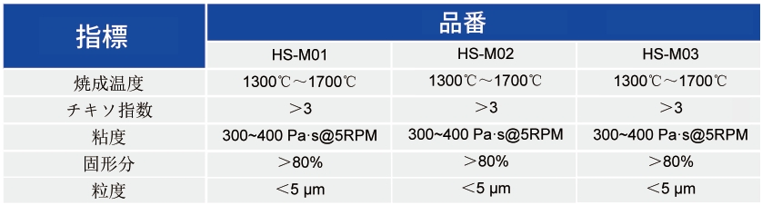 (3)HS-M03は、窒化ケイ素基板のメタライズや、高溫共焼成セラミックプロセス(HTCC)における電極形成のためのスクリーン印刷用厚膜導(dǎo)體ペースト
