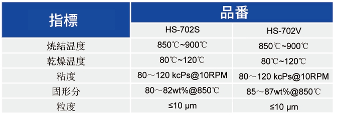 (1)HS-702Sはアルミナセラミック基板に適用する環(huán)境対応型表面電極用ペーストです。(2)HS-702Vはアルミナセラミックス基板に適用する環(huán)境対応型ビア用電極ペーストです。本シリーズの製品の印刷性能は良好です。高溫?zé)喗Y(jié)後には銀は緻密な膜となります。この焼結(jié)した銀は導(dǎo)電性、接著性、品質(zhì)、および信頼性が優(yōu)れています。 PbやCdなどの有害物質(zhì)は含まれていません(RoHS2.0対応)。