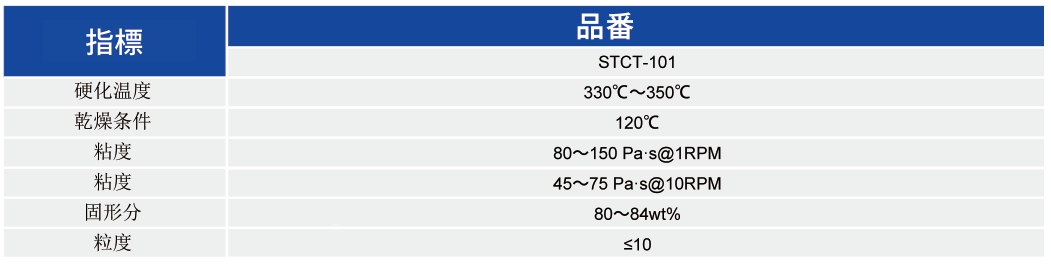STCT-101は、高信頼性たわみクラック対策M(jìn)LCC(0402サイズ以上)の外部電極用低溫硬化型銅ペースト製品です。 この製品の塗布形狀は完全で欠陥がなく、下地外部電極にしっかりと固著されていて脫落しにくいため、生産されたたMLCCは電気特性は良好で耐屈曲性が高く、高信頼性です。