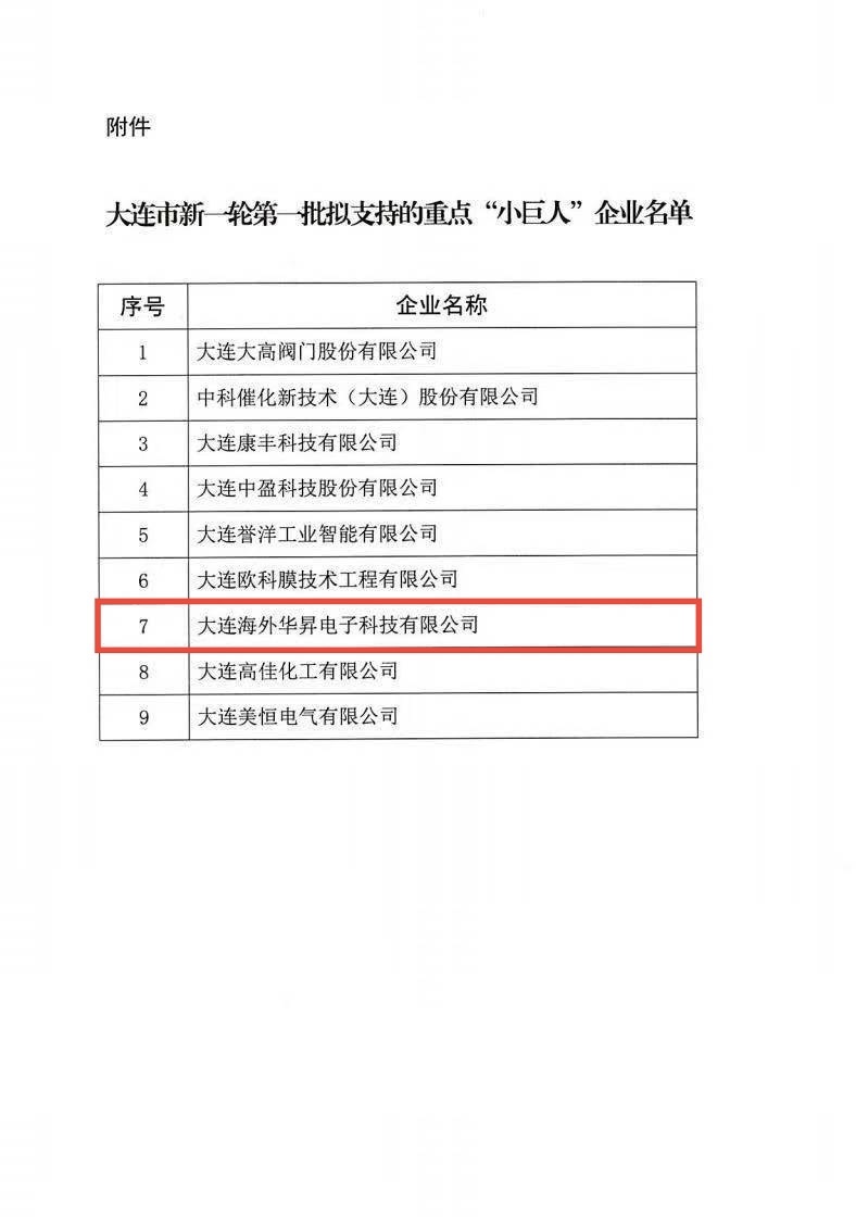 海外華昇成功入選國(guó)家工信部頒發(fā)的新一輪第一批擬支持重點(diǎn)“小巨人”企業(yè)名單