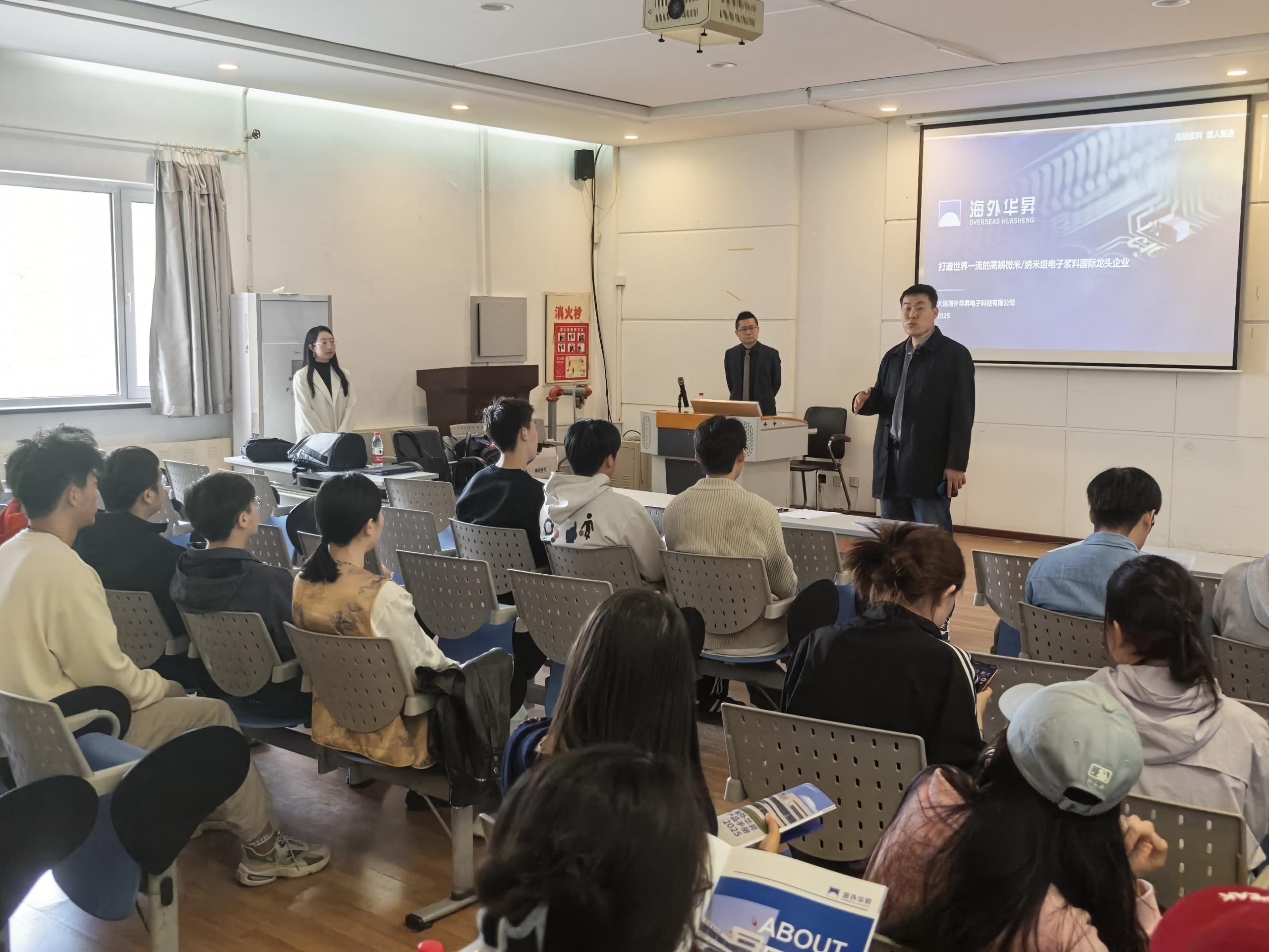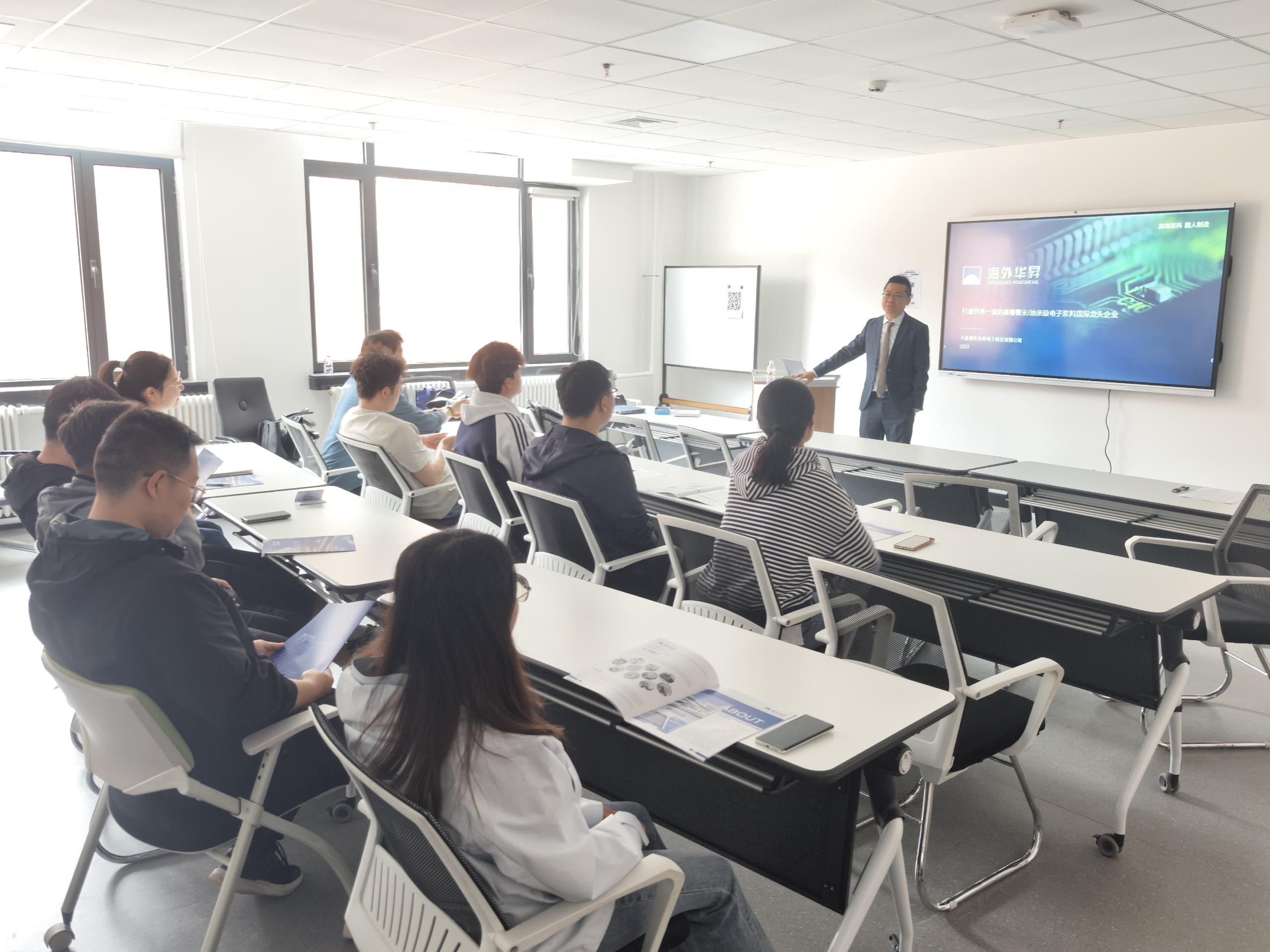 5月15日,海外華昇副董事長李巖率研發(fā)副總經(jīng)理Jeff及人力資源團隊,赴大連理工大學(xué)材料學(xué)院、大連工業(yè)大學(xué)、大連交通大學(xué)等五所高校,開展“產(chǎn)學(xué)研協(xié)同創(chuàng)新”主題校招?;顒泳劢垢叻肿硬牧稀⒓{米電子漿料、新能源材料三大方向,定向招募研發(fā)工程師、工藝技術(shù)員、材料測試專員等緊缺崗位。