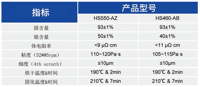 HS550-AZ與HS460-AB是分別用于異質結電池正面與背面的銀包銅細柵漿料,具有優(yōu)秀的印刷性能,柵線具有優(yōu)良的高寬比,應用此兩款漿料制成的組件可靠性好,分別為50%和40%的銀含可以很好滿足客戶的降本需求。